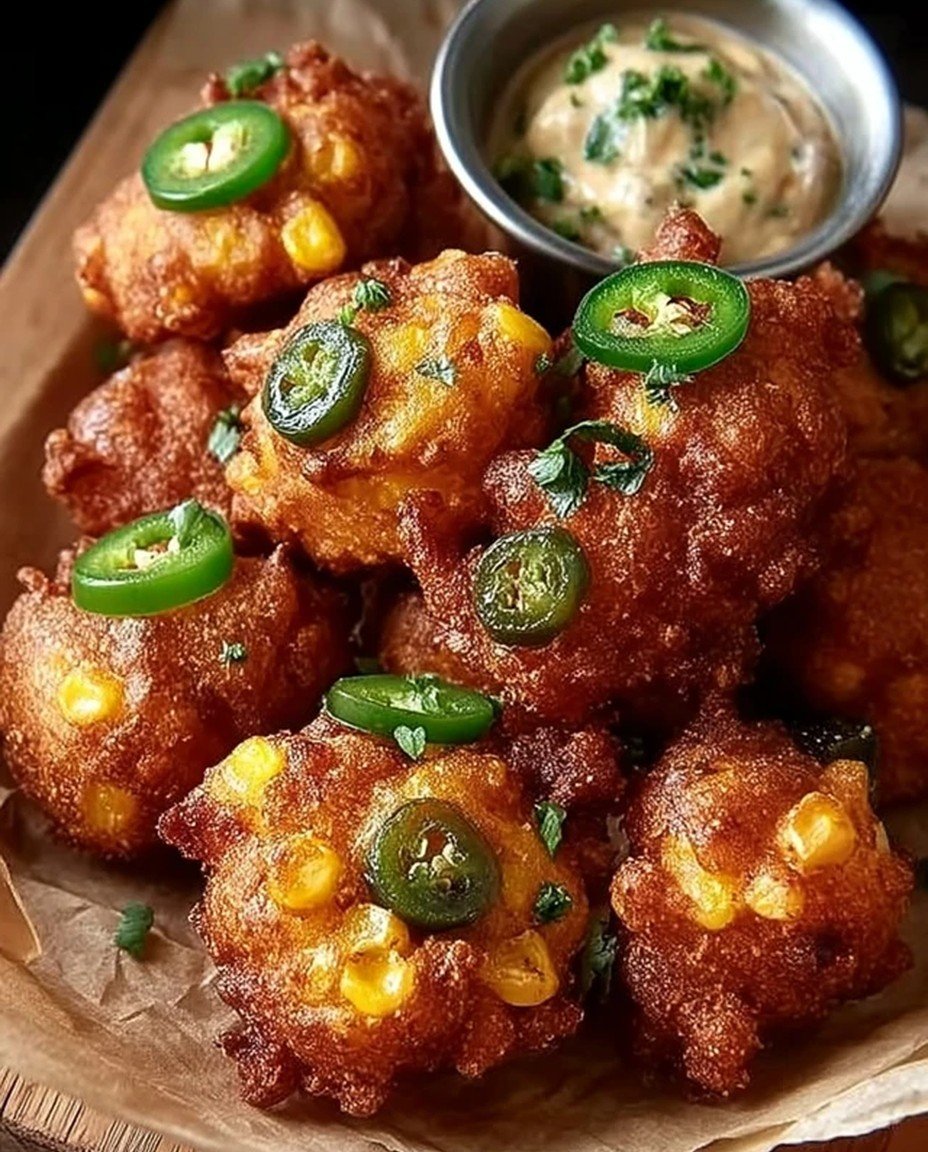 Golden, crispy morsels bursting with the sweet heat of jalapeños and the comforting essence of corn dance in your mouth. Each bite offers a delightful crunch followed by the warmth of spices that leaves you reaching for more.