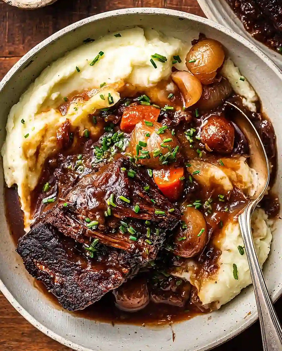 10. Servieren Sie das geschmorte Rindfleisch heiß mit einer Beilage aus Kartoffelpüree oder knusprigem Brot.