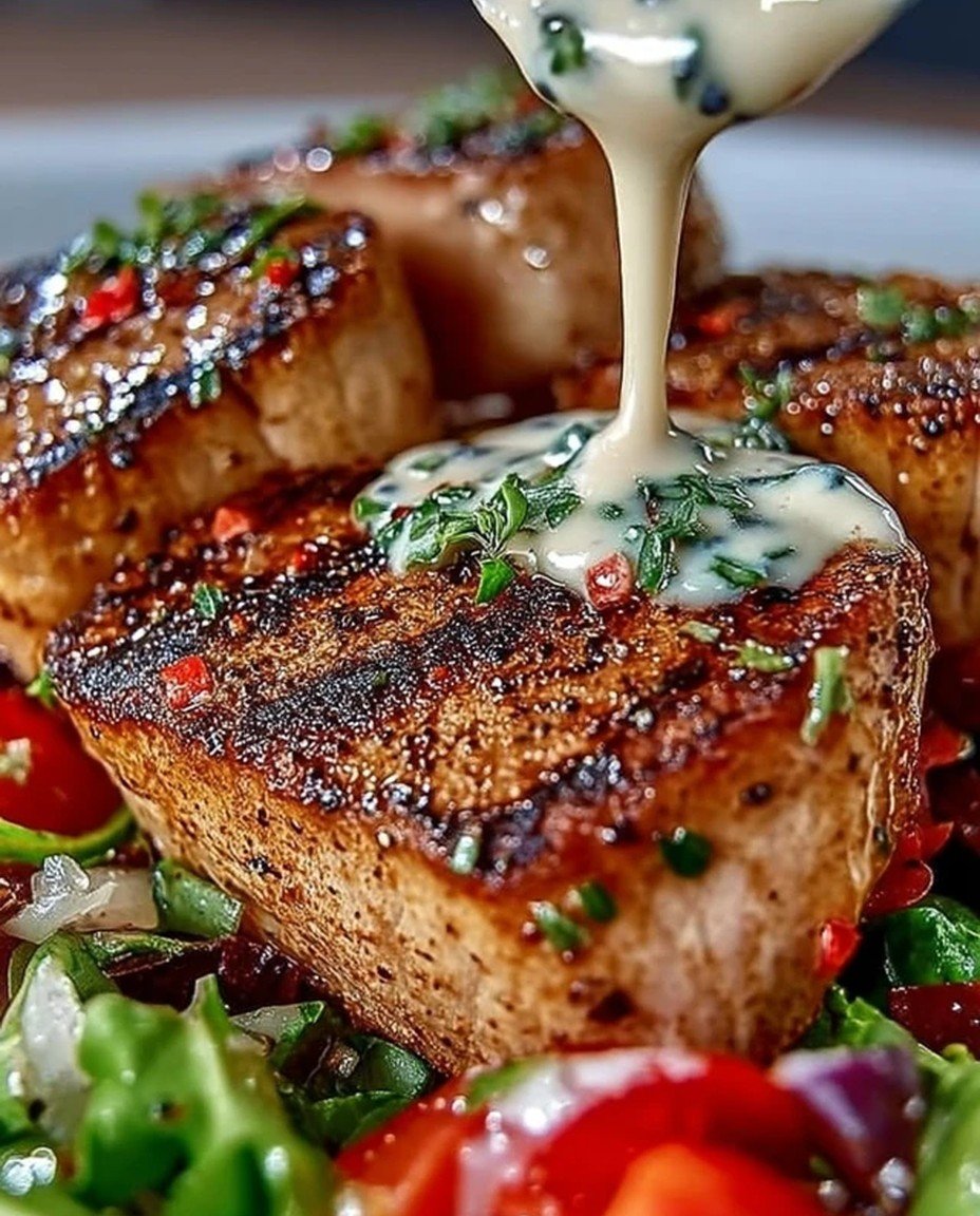 This Tuna Steaks with Creamy Garlic Sauce & Salad: A Gourmet Dinner Experience is not only easy to prepare but also presents a unique flavor profile that will elevate any weeknight dinner. Picture perfectly seared tuna paired with a velvety garlic sauce that sings in harmony with fresh greens. With its stunning appearance and vibrant colors, this dish is perfect for impressing guests or simply treating yourself. Plus, you can customize it by adding your favorite veggies or swapping out ingredients to suit your taste!