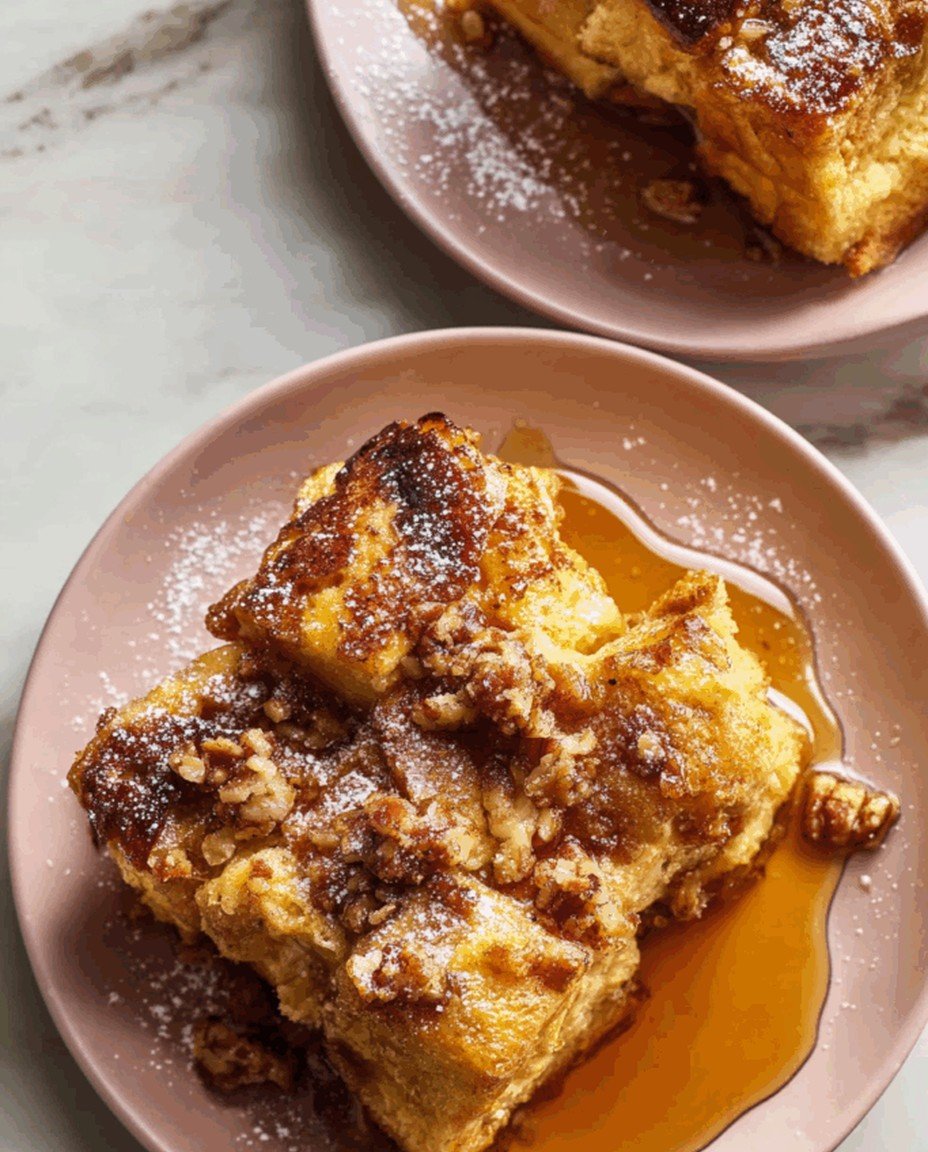Ein köstlicher Überbackenes Französisches Toast Auflauf mit einer goldbraunen Kruste, der süße und herzhafte Noten vereint. Ideal für jeden Brunch, einfach zuzubereiten und anpassbar mit verschiedenen Früchten.