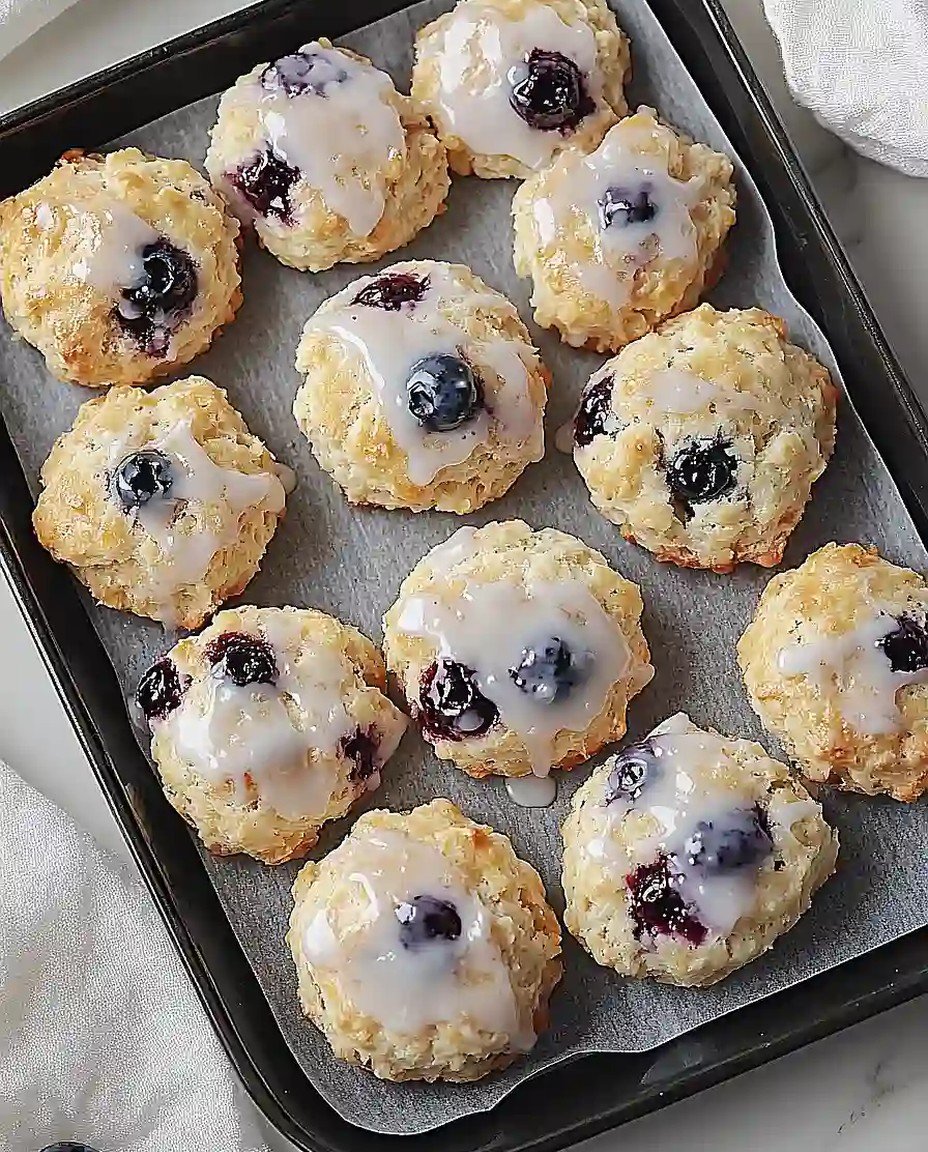 Servieren: Die unwiderstehlichen Blaubeerplätzchen eignen sich hervorragend als süßer Snack oder Dessert. Servieren Sie sie warm mit einer Tasse Tee oder Kaffee, oder garnieren Sie sie mit Puderzucker für einen ansprechenden Look.