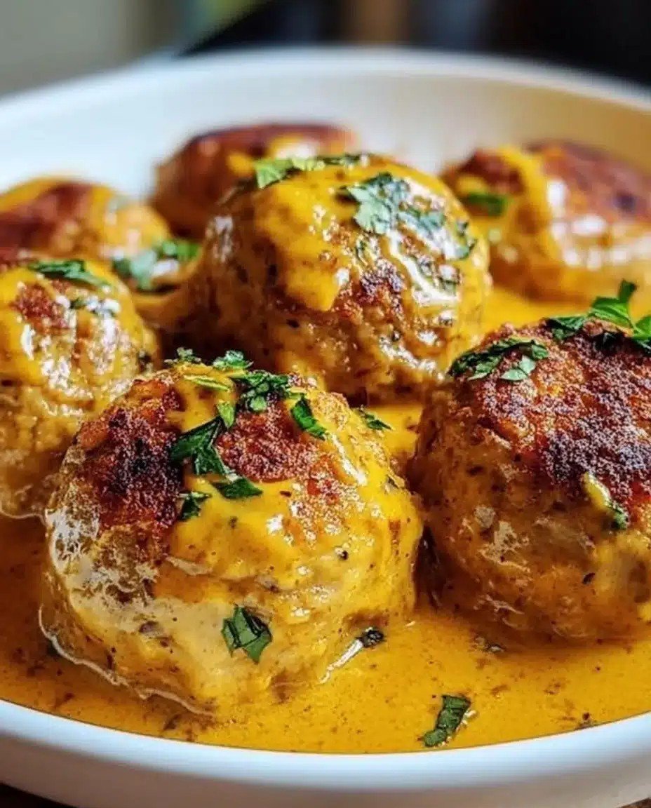 Servieren Sie die veganen Linsenknödel in Curry-Sauce sofort, um das volle Zusammenspiel der warmen, cremigen Sauce und der weichen, aromatischen Knödel optimal zu genießen.