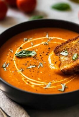 Die Wärmende geröstete Tomaten-Basilikum-Suppe vereint süße, karamellisierte Tomaten mit frischem Basilikum und einer cremigen Textur aus Kokosmilch. Diese Kombination sorgt für eine ausgewogene Geschmackstiefe und ein unvergessliches Aroma.