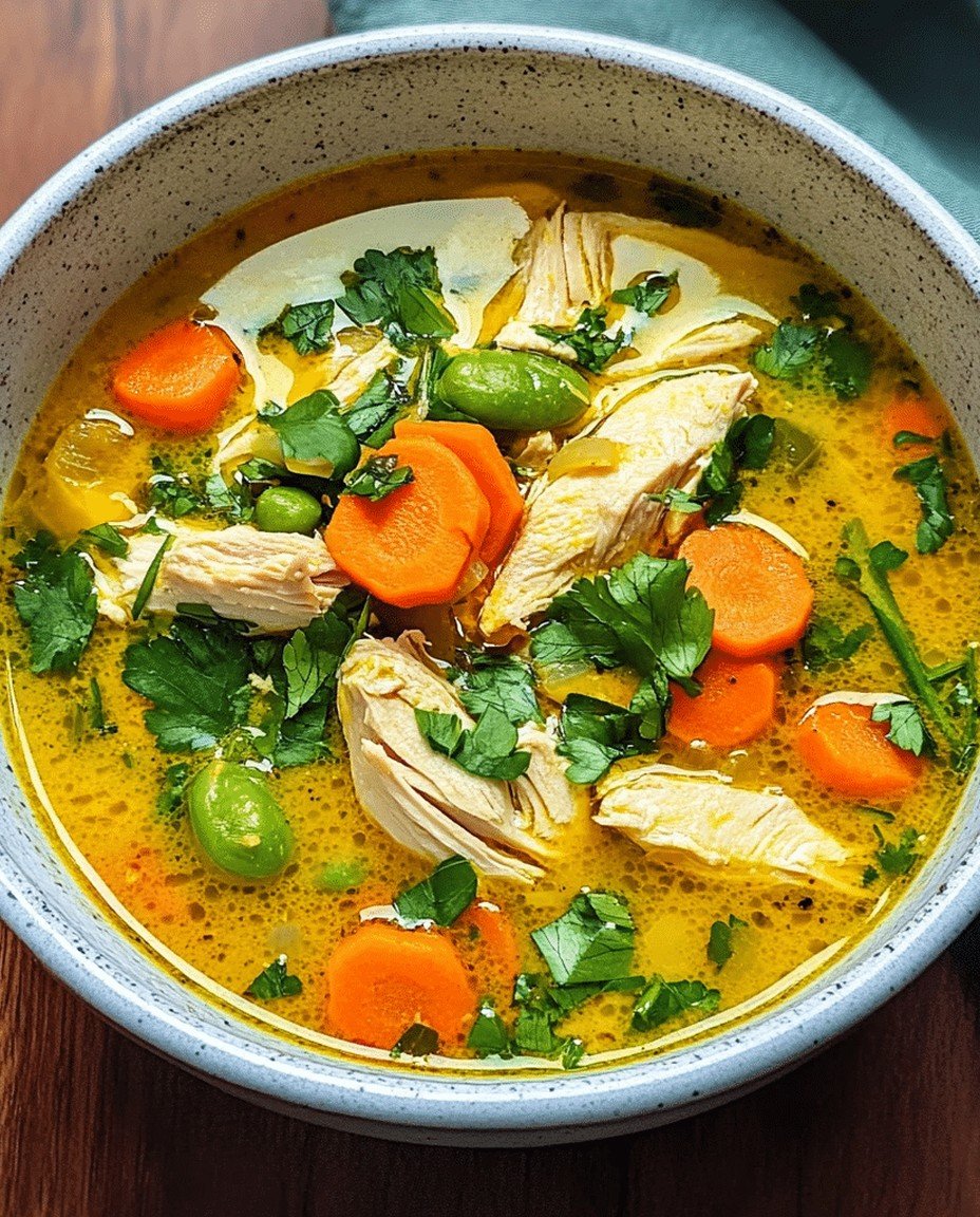 Diese Suppe ist ein Powerpaket gegen Entzündungen! Frische Kräuter Kurkuma und zartes Huhn vereinen sich zu einem köstlichen Immunbooster.